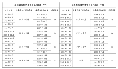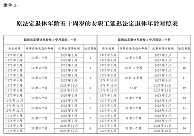 3.原法定退休年齡五十周歲的女職工延遲法定退休年齡對(duì)照表
