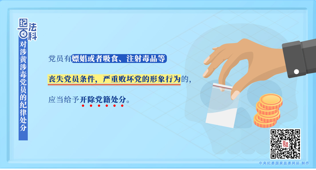《中國共產(chǎn)黨紀(jì)律處分條例》第三十條第三款規(guī)定,黨員有嫖娼或者吸食、注射毒品等喪失黨員條件,嚴(yán)重敗壞黨的形象行為的,應(yīng)當(dāng)給予開除黨籍處分。