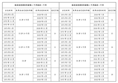 3.原法定退休年齡五十周歲的女職工延遲法定退休年齡對(duì)照表