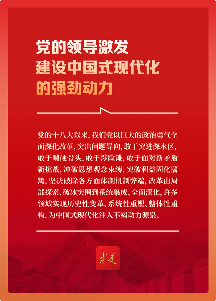 “為什么要強(qiáng)調(diào)黨在中國式現(xiàn)代化建設(shè)中的領(lǐng)導(dǎo)地位?這是因?yàn)椋h的領(lǐng)導(dǎo)直接關(guān)系中國式現(xiàn)代化的根本方向、前途命運(yùn)、最終成敗!
